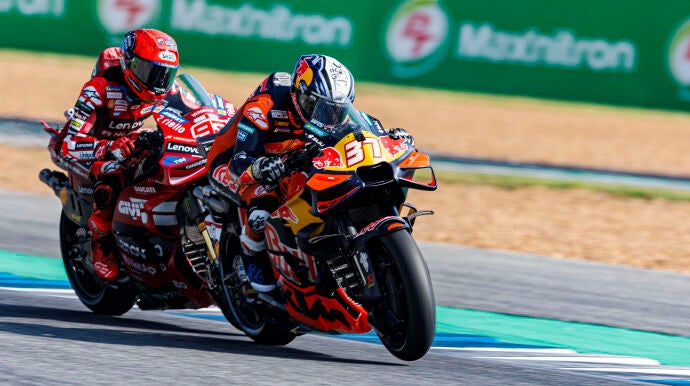 "El año que viene va a tener que medicarse para bajar las pulsaciones...", dice Aspar después de un Gran Premio de Tailandia en el que ambos pilotos protagonizaron una lucha vibrante.