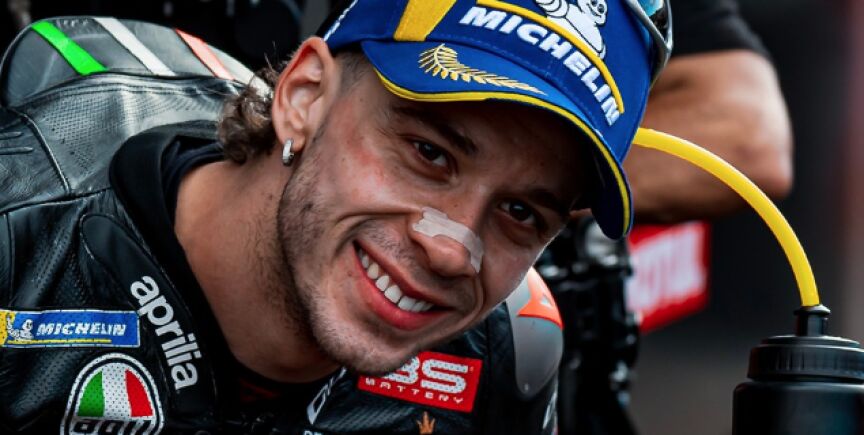 Tras una impresionante temporada que ha servido como carta de presentación, el piloto italiano ha analizado los entresijos de su primera temporada con Aprilia y la dinámica vivida con el piloto madrileño.