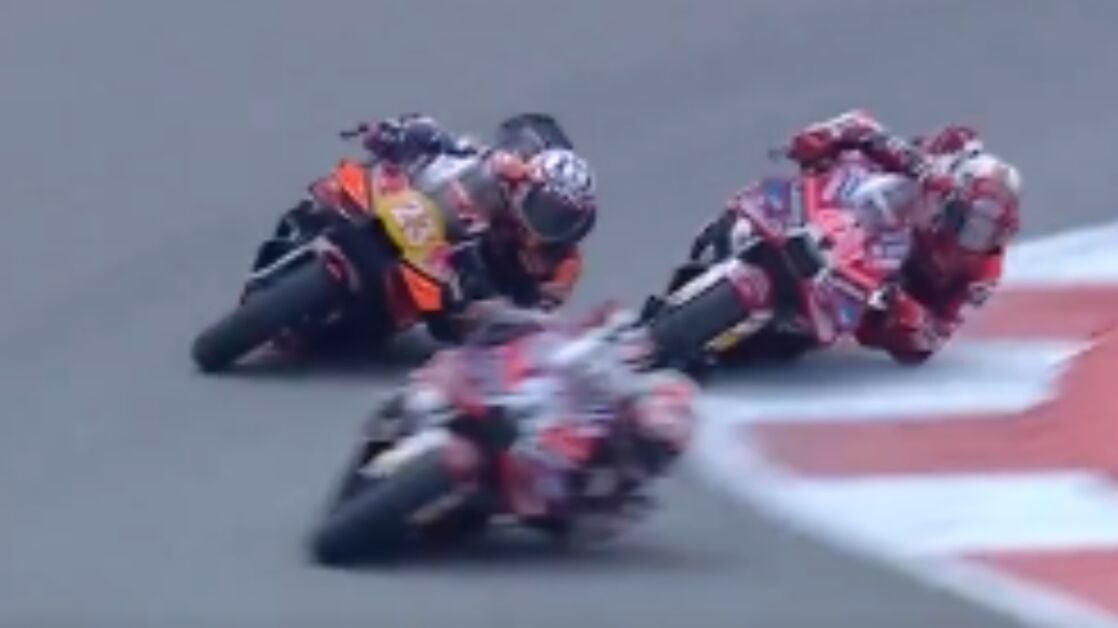 A partir de ahí, Marc se activó. Comenzó a ganar posiciones y a falta de tres vueltas para el final se vio envuelto en una espectacular batalla con Enea Bastianini, piloto de KTM, y 'Pecco' Bagnaia. El ilerdense tuvo una pelea muy bonita con el ex de Ducati.