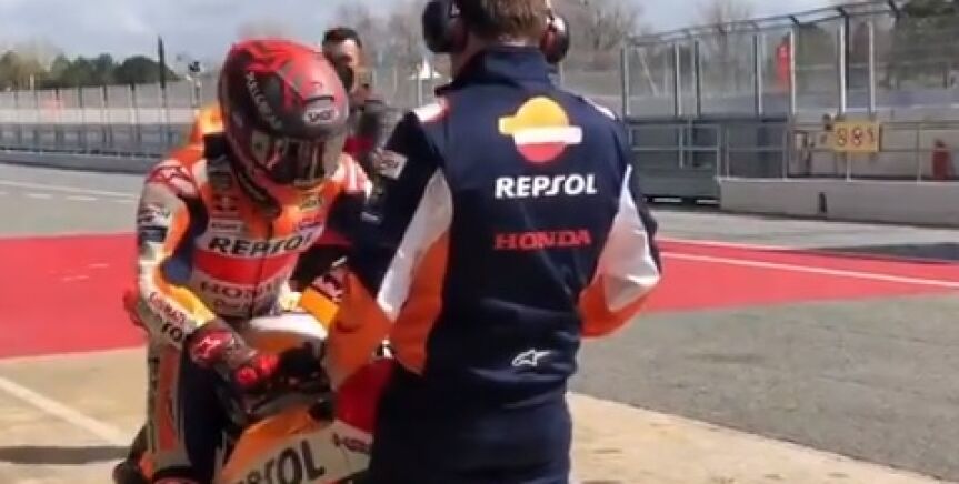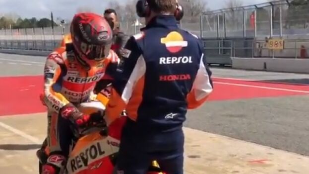 Si el pasado sábado Marc Márquez se subía a una mini moto e ilusionaba a todos sus fans con su vuelta, ahora lo ha hecho con una de mayor cilindrada, una RC213V-S de Honda.