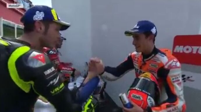 Márquez y Rossi pueden haber dado el primer paso hacia una reconciliación definitiva. Ambos se dieron la mano tras la carrera del GP de Argentina, en la que Márquez sacó una ventaja abismal al resto de compañeros.
