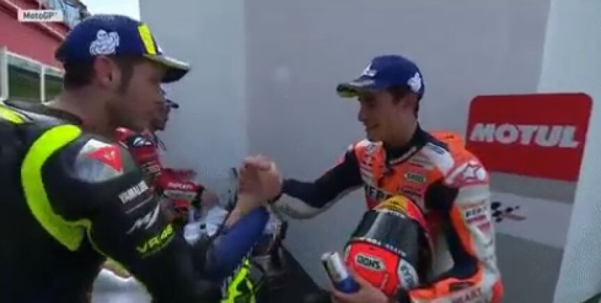 Marc Márquez y Valentino Rossi parece que han normalizado su relación personal. El español y el italiano se dieron la mano tras el GP de Argentina, en el que fueron primero y segundo.