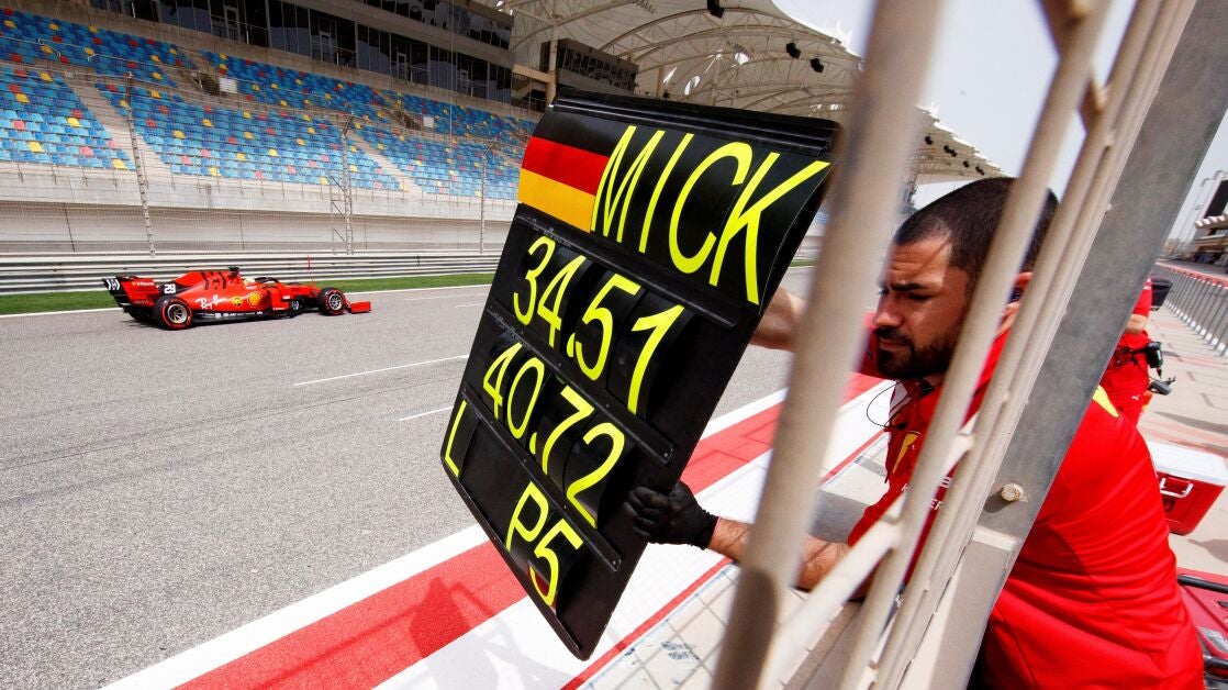 Mick Schumacher, hijo de Michael, siete veces campeón del mundo de Fórmula Uno, salió rápidamente a la pista cuando ésta finalmente se secó. En su debut al volante de un Fórmula 1, el debutante germano sólo pudo dar 33 vueltas con el Ferrari antes de que la lluvia detuviera el programa de Ferrari al principio de la jornada.