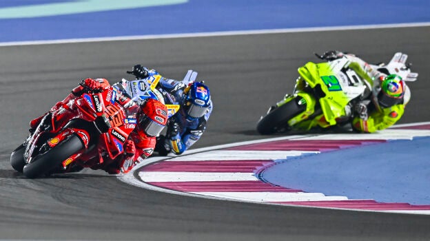 Ponemos fin a esta retransmisión del Gran Premio de Catar. Marc Márquez se ha llevado la victoria en una carrera que ha sido una absoluta locura. Hasta tres pilotos han liderado una prueba que ha comenzado con el 'toque' de los Márquez en la primera curva. El podio lo han completado Maverick Viñales, segundo, y 'Pecco' Bagnaia, tercero. Álex Márquez ha terminado séptimo en una carrera en la que ha tenido varios incidentes. Márquez se distancia de esta manera de su hermano en la clasificación mundial de pilotos. En la cara gris de la carrera está Jorge Martín. El vigente campeón ha sufrido una dura caída y estamos pendientes de conocer el alcance de su lesión. Muy duro el regreso de un Jorge que poco a poco iba adaptándose a la Aprilia. Seguiremos informando en 'laSexta.com' sobre cualquier última hora del Mundial de MotoGP. ¡¡Hasta pronto!!