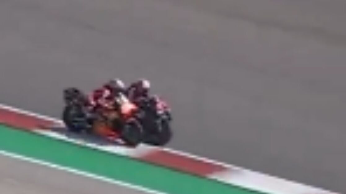 El peligroso lance entre Bezzecchi y Acosta cuando peleaban por el liderato del GP de Las Américas