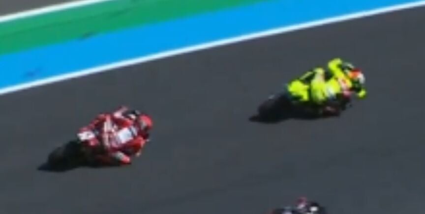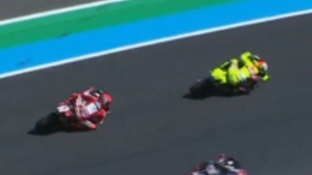 El italiano se fue algo largo en una curva y, para evitar el choque, Marc frenó. Eso abrió un hueco que Jorge aprovechó para adelantar a ambos pilotos y pasar directamente del cuarto al segundo puesto.