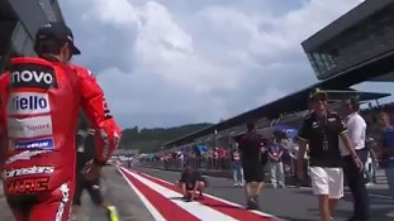 Más tarde, sobre instante era preguntado Márquez que explicaba la secuencia en declaraciones recogidas por 'Motosan': "No lo he visto, te lo prometo. Iba centrado en lo mío, seguramente caminando, mirando al suelo, porque siempre miro hacia abajo y con las gafas de sol".