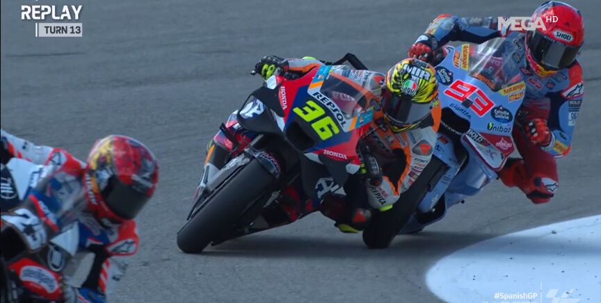 El toque entre Márquez y Joan Mir en Jerez que acabó con sanción para Marc