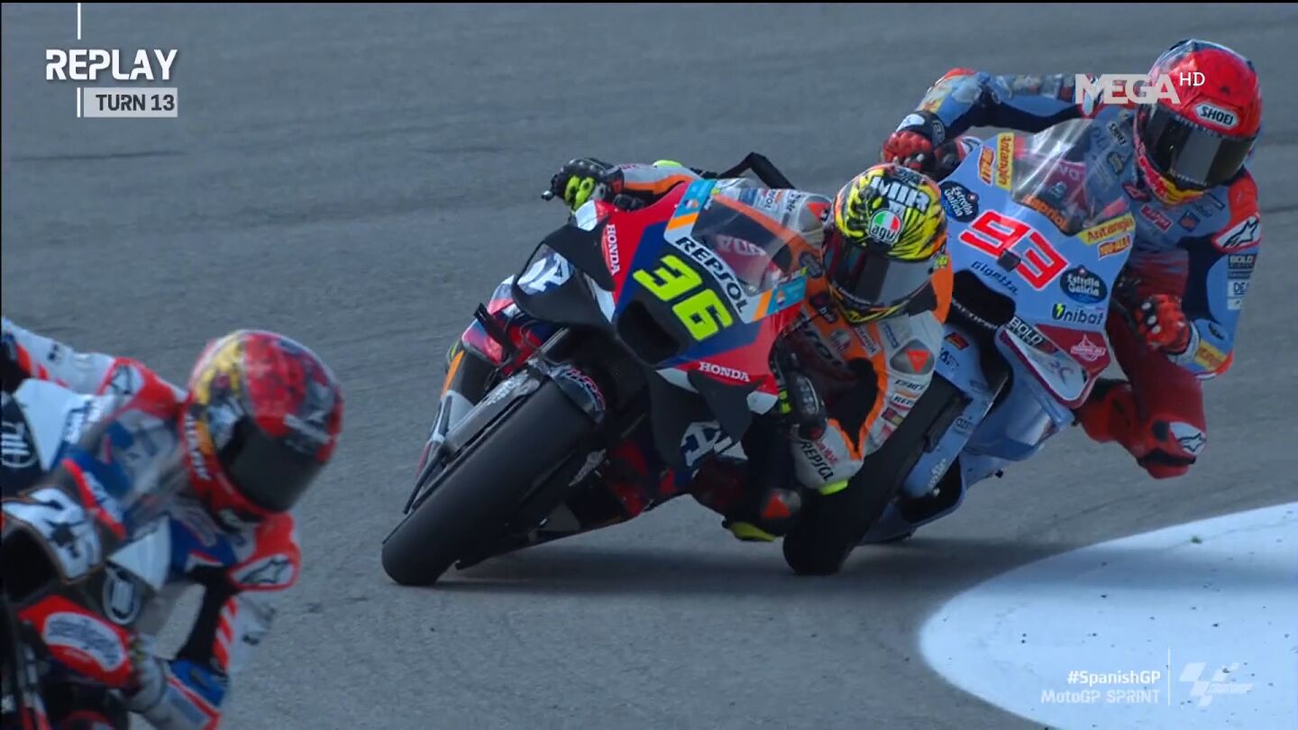 Pero el piloto de Honda no vio venir a Marc, que le echó de pista a falta de dos giros, haciendo caer a Mir a la decimoquinta plaza. Márquez, que consiguió remontar hasta la sexta posición, fue sancionado con un puesto, por lo que cruzó la meta séptimo.