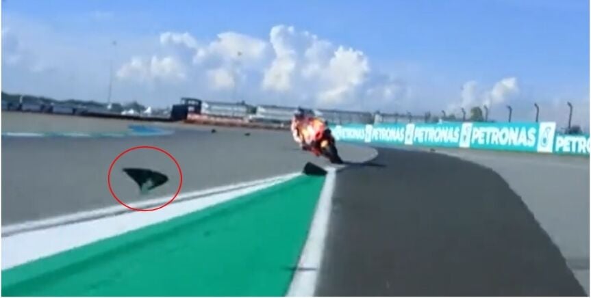 Se trataba de una aleta que las Ducati llevan rueda delantera, y esta golpeó en el hombro derecho de Marc.