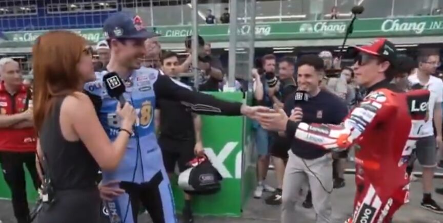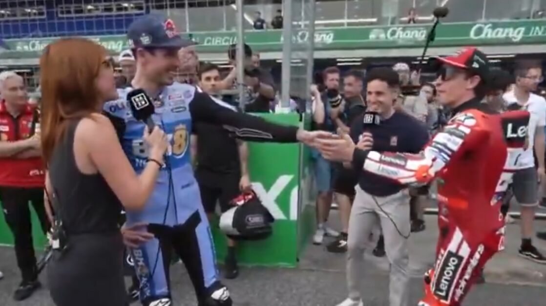 "Vete, vete", le ha dicho Álex a Marc cuando ha aparecido por sorpresa al lado de su hermano. "Siempre está en medio", continuaba señalando el piloto de Gresini entre risas, mientras Marc se marchaba.