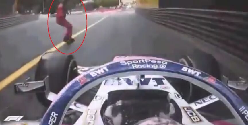 Susto enorme en el GP de Mónaco: 'Checo' Pérez, a punto de atropellar a un comisario