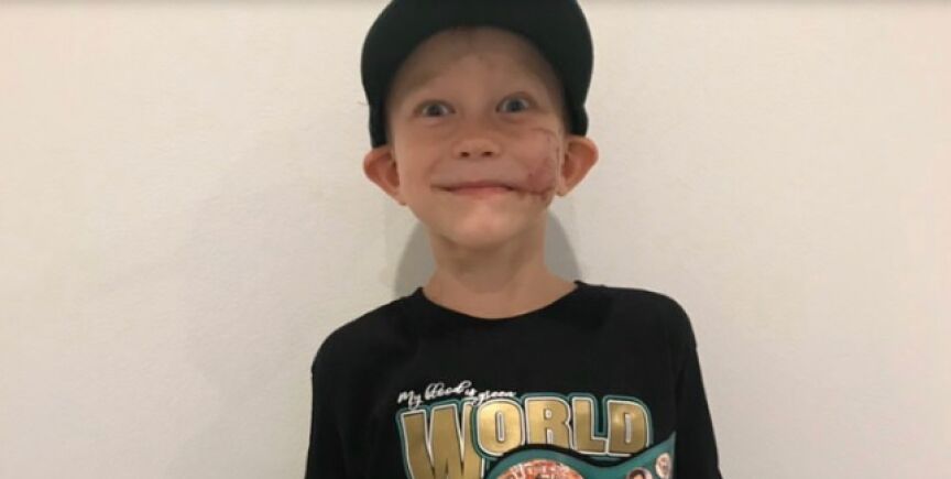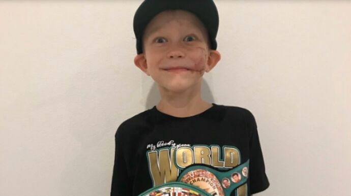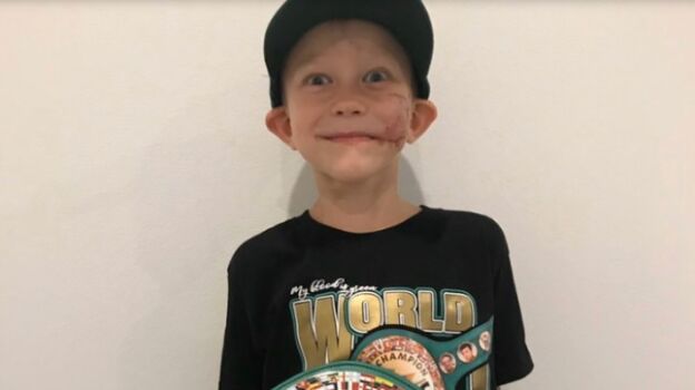 Bridger, el pequeño que salvó a su hermana del ataque de un perro, recibe un cinturón de campeón de boxeo