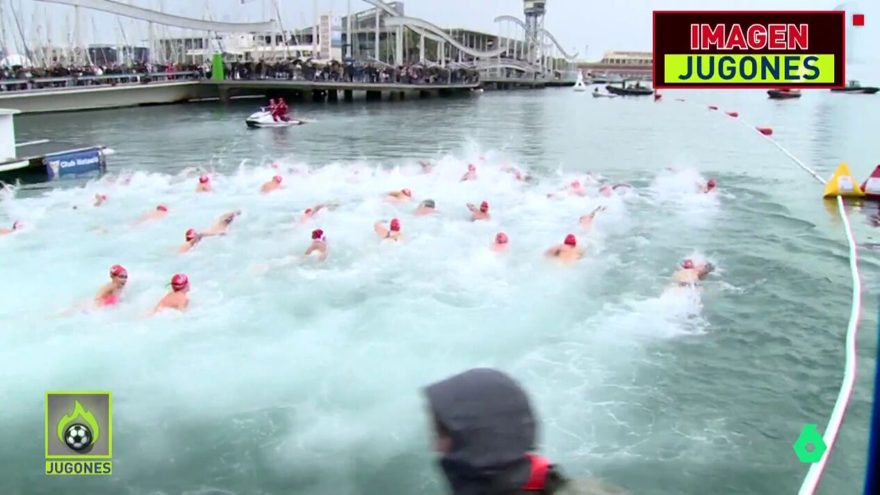 Es tradición en la día de Navidad la Copa Nadal en el puerto de Barcelona, que reúne a decenas de nadadores.