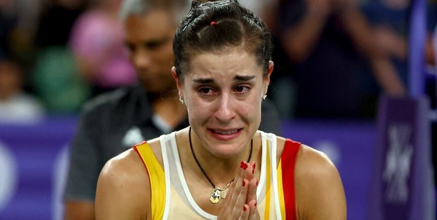 Carolina Marín ha dicho adiós a París de la forma más cruel posible. La jugadora, cuando dominaba sin problemas su semifinal en bádminton femenino, se retiró por lesión tras un mal gesto en su rodilla derecha. Entre lágrimas, la onubense dejó helados tanto al pabellón como a quienes presenciaban su envite por televisión.