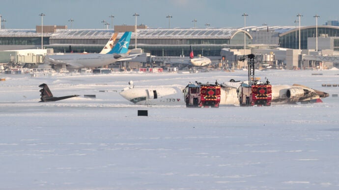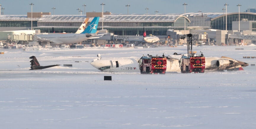 Este lunes se ha producido un accidente en el que un avión de la aerolínea Delta Airlines ha volcado al realizar la maniobra de aterrizaje en el aeropuerto de Toronto. Se desplazaban en él 80 pasajeros.