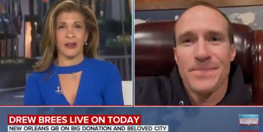 Drew Brees, quarterback de los New Orleans Saints, donó en directo 5 millones de dólares para luchar contra el coronavirus. La presentadora del programa no pudo evitar romper en lágrimas.
