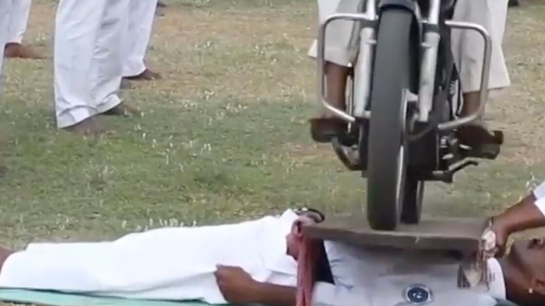 No todos los días se ve un récord tan sorprendente como el protagonizado por un profesor de karate en La India. El karateca Renshi Pradeep Babu, mostró una increíble resistencia después de que 1.200 motocicletas pasaran por encima de su pecho.