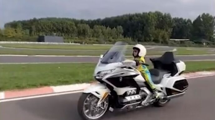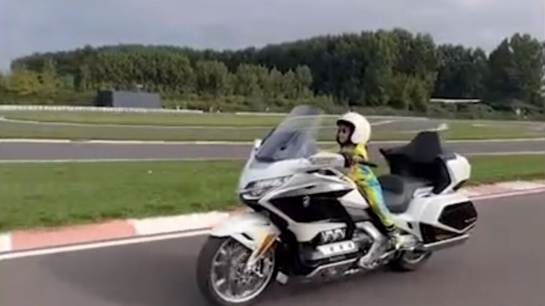 Se trata de una Honda Gold Wing, una gran motocicleta y que nada tiene que ver con una mini moto que podría pilotar el niño.