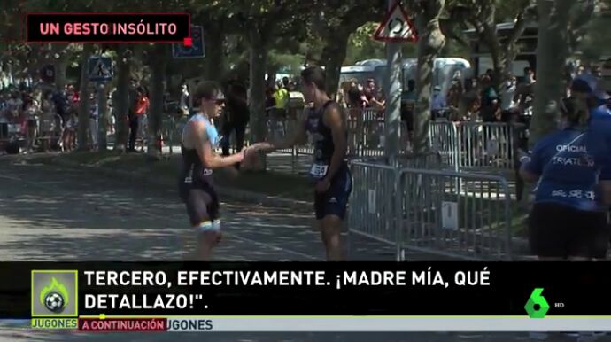 Se trata, probablemente, del gesto más deportivo de los útlimos tiempos. En el Triatlón de Santander, el británico James Teagle se equivocó de camino antes de llegar a la meta, Diego Méntrida le superó, pero en lugar de cruzar la meta, dejó que su rival pasase primero.