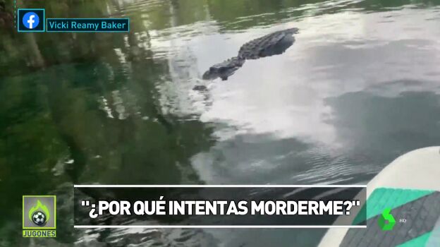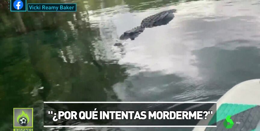 Una mujer está practicando paddle surf cuando de repente se acerca un caimán y no parece querer marcharse de su lado. Incluso trata de morder su tabla. Las imágenes son angustiosas, aunque la protagonista es capaz de mantener la calma.