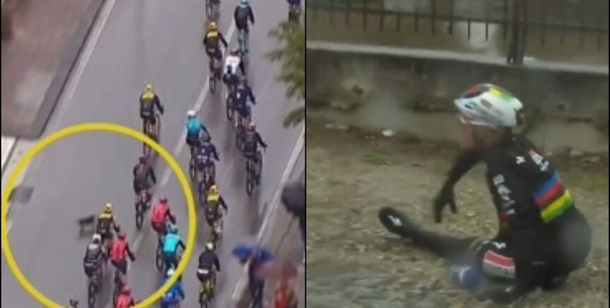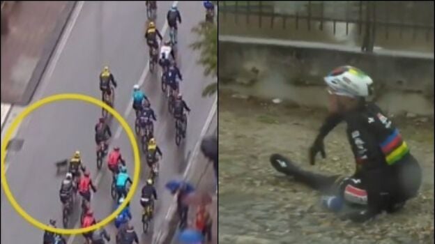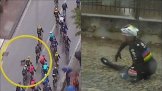 El ciclista belga circulaba en medio del pelotón cuando, de pronto, un perro irrumpió en la carretera cruzándose y provocando la caída del ganador de la Vuelta a España 2022.