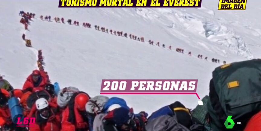 La última 'moda' en el alpinismo es la de coronar el Everest. Tanto es así que se ha producido una imagen muy comentada, la de cientos de personas aglomerándose en la cima, haciendo cola, para coronar la montaña más alta del planeta.