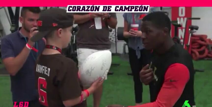 "Quiero que sigas soñando y asegúrate de que sueñas lo más grande posible". Es el consejo del jugador de los Cleveland Browns, TJ Carrie, a un niño con un grave problema cardíaco.