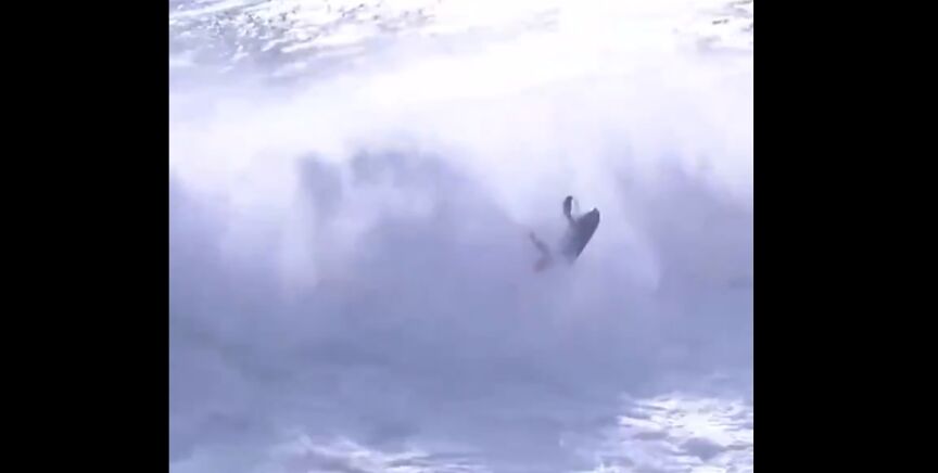 La previsón de grandes olas en Nazaré obligaba a la organización del 'World Surf League' a convocar el 'Nazare Tow Surfing Challenge'. Con olas de hasta 20 metros, los surfistas se enfrentaban durante seis rondas por lograr la victoria. Sin embargo, Alex Botelho junto con la persona que llevaba en la moto de agua, no lograron escapar de las olas y acabaron por los aires.