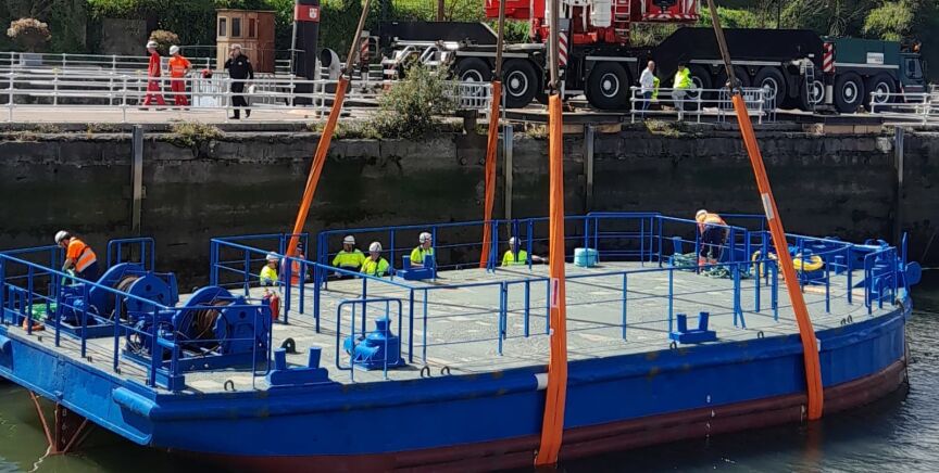 Así es, la gabarra 'Athletic' está siendo remolcada. Cuenta con 18,5 metros de eslora, 8,5 metros de manga, 1,7 metros de puntal y 1,14 metros de calado. La última vez que salió fue en mayo de 1984 para celebrar un título del Athletic. Esta es, por tanto, la tercera vez que el Athletic celebra un éxito cruzando la ría en gabarra tras las de 1983 y 1984.