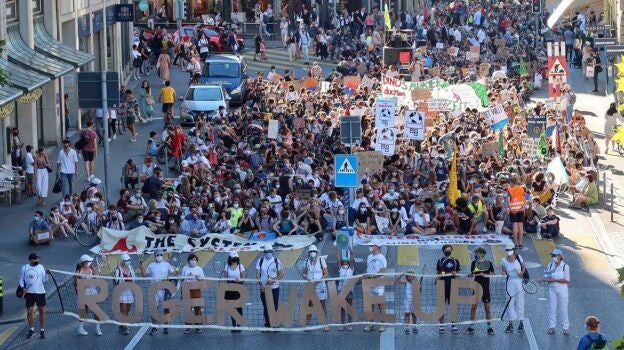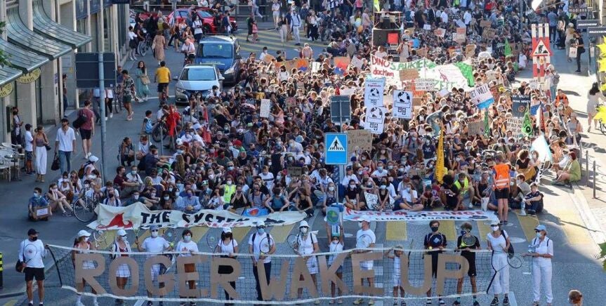 Roger Federer está recibiendo severas críticas en su país. Este miércoles cientos de activistas climáticos salieron a la calle con un mensaje directo para él: "Despierta, Roger".