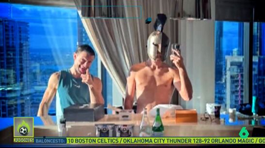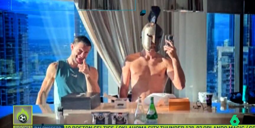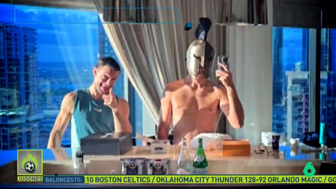 Imágenes con un casco de gladiador y también se ha divertido haciendo de botones.
