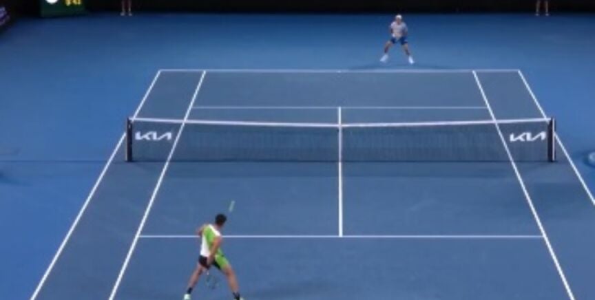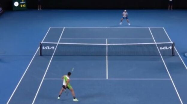 Carlitos cerró el primer set por la vía rápida y sin aparente complicaciones (6-3) y en el comienzo del segundo quiso dar un poco de espectáculo. Para devolver un golpe de Walton, Alcaraz se atrevió a darle entre las piernas poniendo en pie a la Rod Laver Arena.