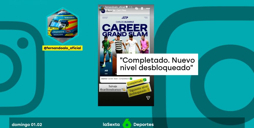 Tras la conquista de un nuevo 'grande', su primer Open de Australia, las grandes leyendas del deporte español no han dudado en rendirse a la magnitud del número uno del mundo. Fernando Alonso ha sido uno de los primeros en felicitar a Carlitos. El asturiano ha querido hacer referencia, en sus redes, al histórico hito en el que Alcaraz se ha convertido en el más joven en ganar los cuatro 'Grand Slams': "Nuevo logro desbloqueado"