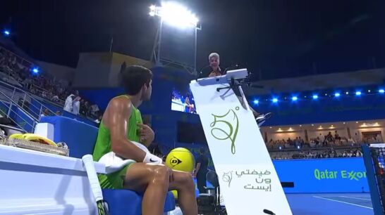 El número 1 del mundo, en los cuartos de final de Doha ante Khachanov, ha tenido una fuerte discusión con la juez de silla tras recibir 'warning'.