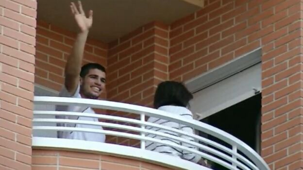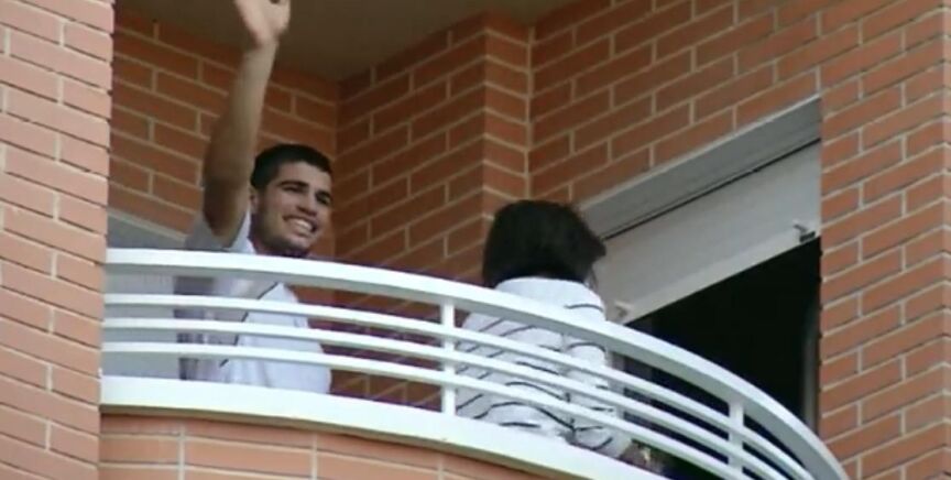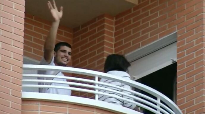 Alcaraz se asomó al balcón de su casa acompañado por su madre, y por supuesto de su nuevo trofeo, y se encontró con una multitud de personas que le estaba esperando al grito de: "¡Carlos, Carlos!". Y es que, con tan solo 19 años de edad recién cumplidos, ya es un ídolo para los más jóvenes.