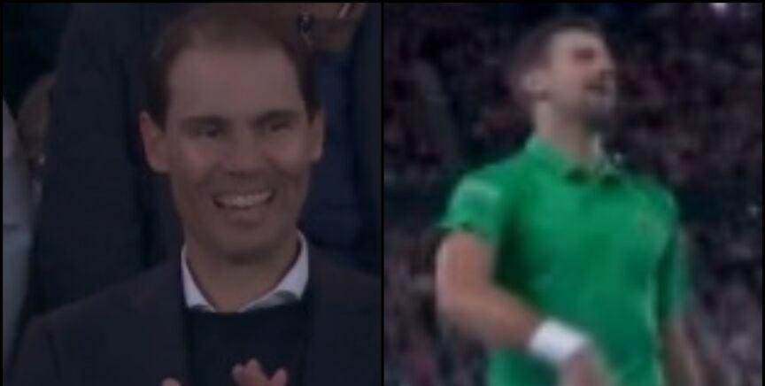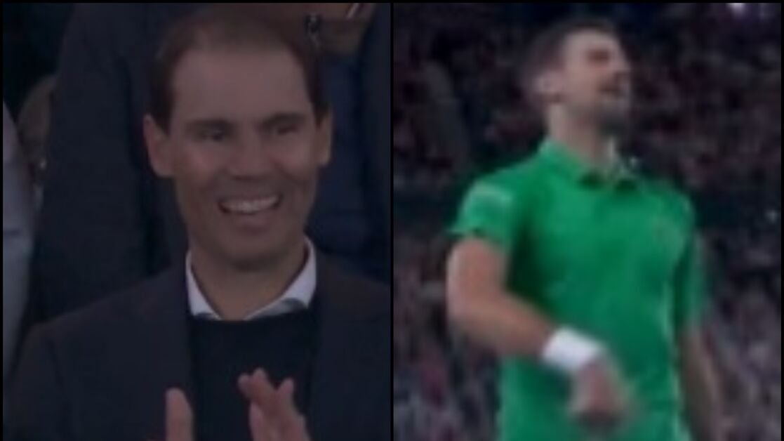 Rafa Nadal, invitado de absoluto lujo en el palco de la Rod Laver Arena, no quiso perderse el duelo entre dos grandes conocidos para él. Muy atento, vivía el encuentro el mallorquín, cuando Novak se dirigió a él desde la pista.