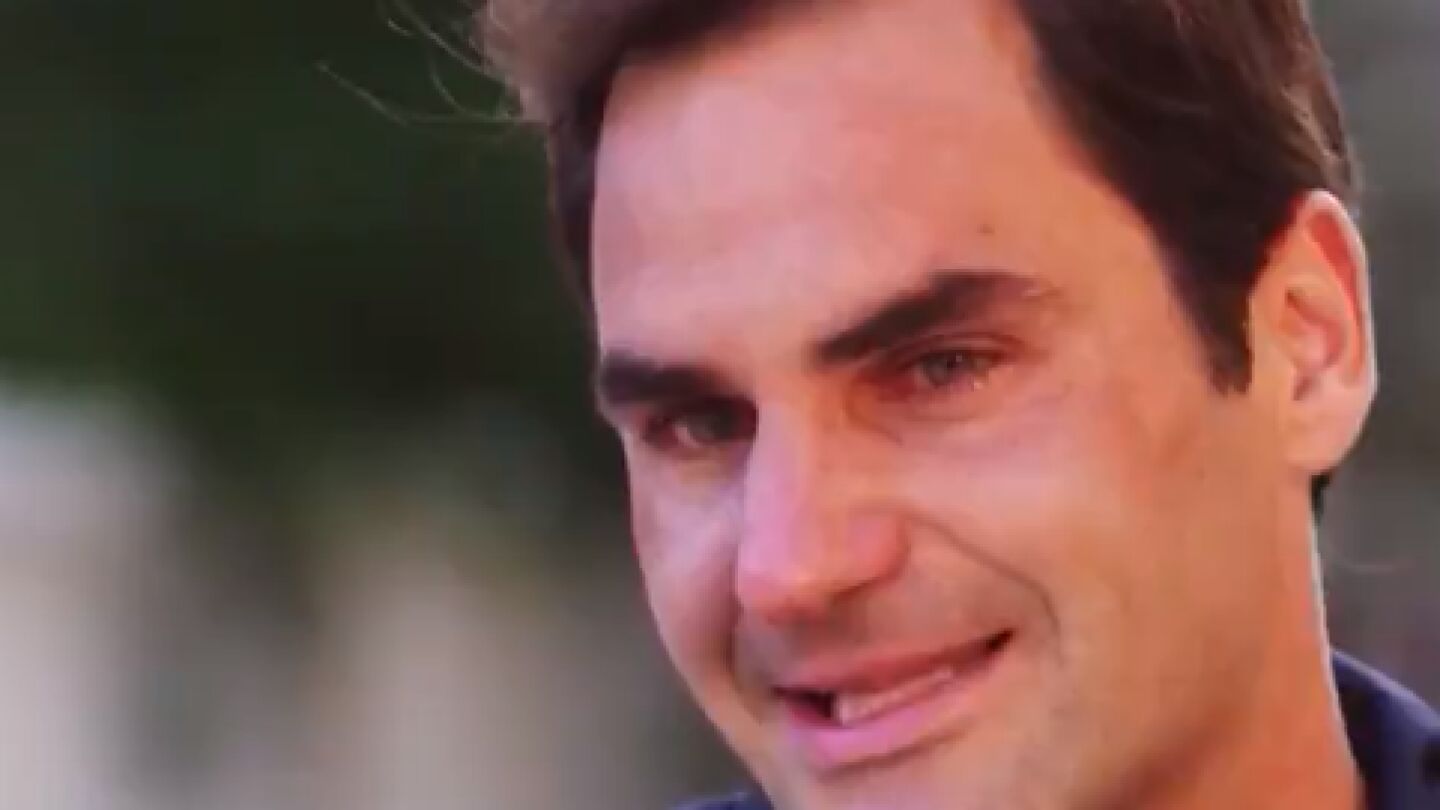"¿Qué crees que sentiría si te viese ahora con 20 Grand Slams?", le preguntó la periodista. Inmediatamente, Federer se derrumbó. Después de recuperar el aliento, respondió la pregunta.