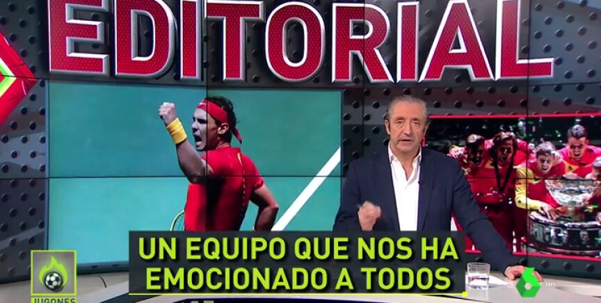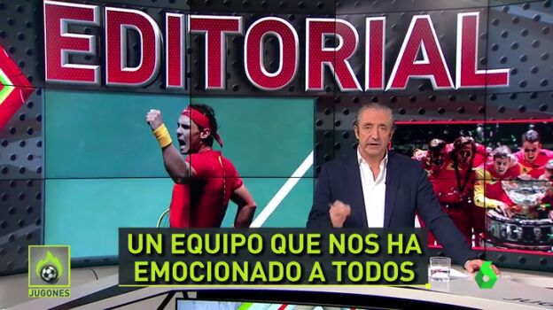 El editorial de este lunes de Josep Pedrerol fue dedicado al gran éxito del deporte español del fin de semana, la Copa Davis que España ganó a Canadá. El presentador de Jugones deja una mención especial para Roberto Bautista y para Rafa Nadal.