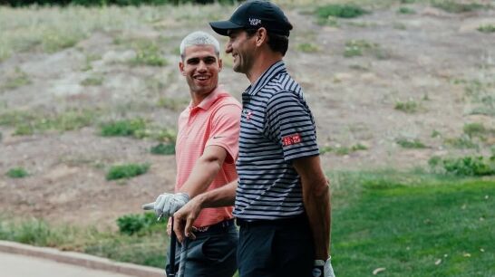 Carlos Alcaraz, al igual que muchos otros deportistas, aprovecha los días libres para practicar otras disciplinas de las que son aficionados. En el caso del murciano, el golf es una de ellas y, tras vencer a Adam Walton, aprovechó para jugar con un compañero muy especial.