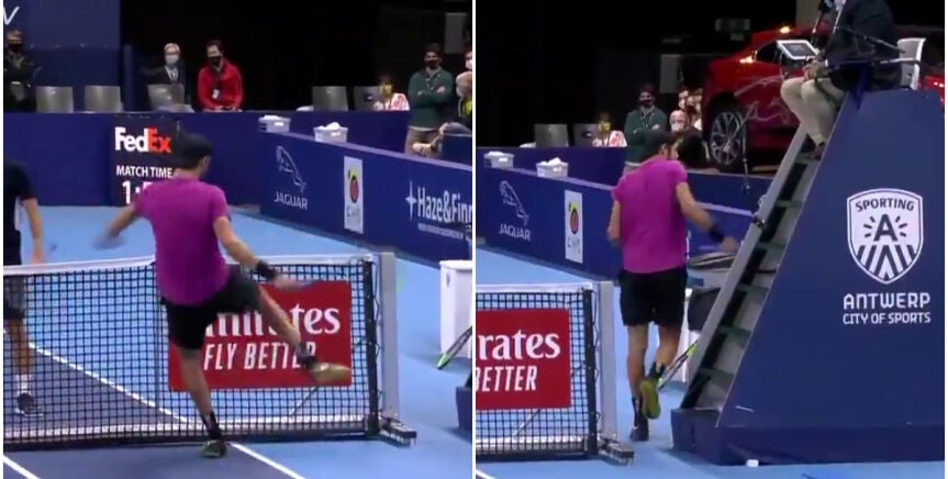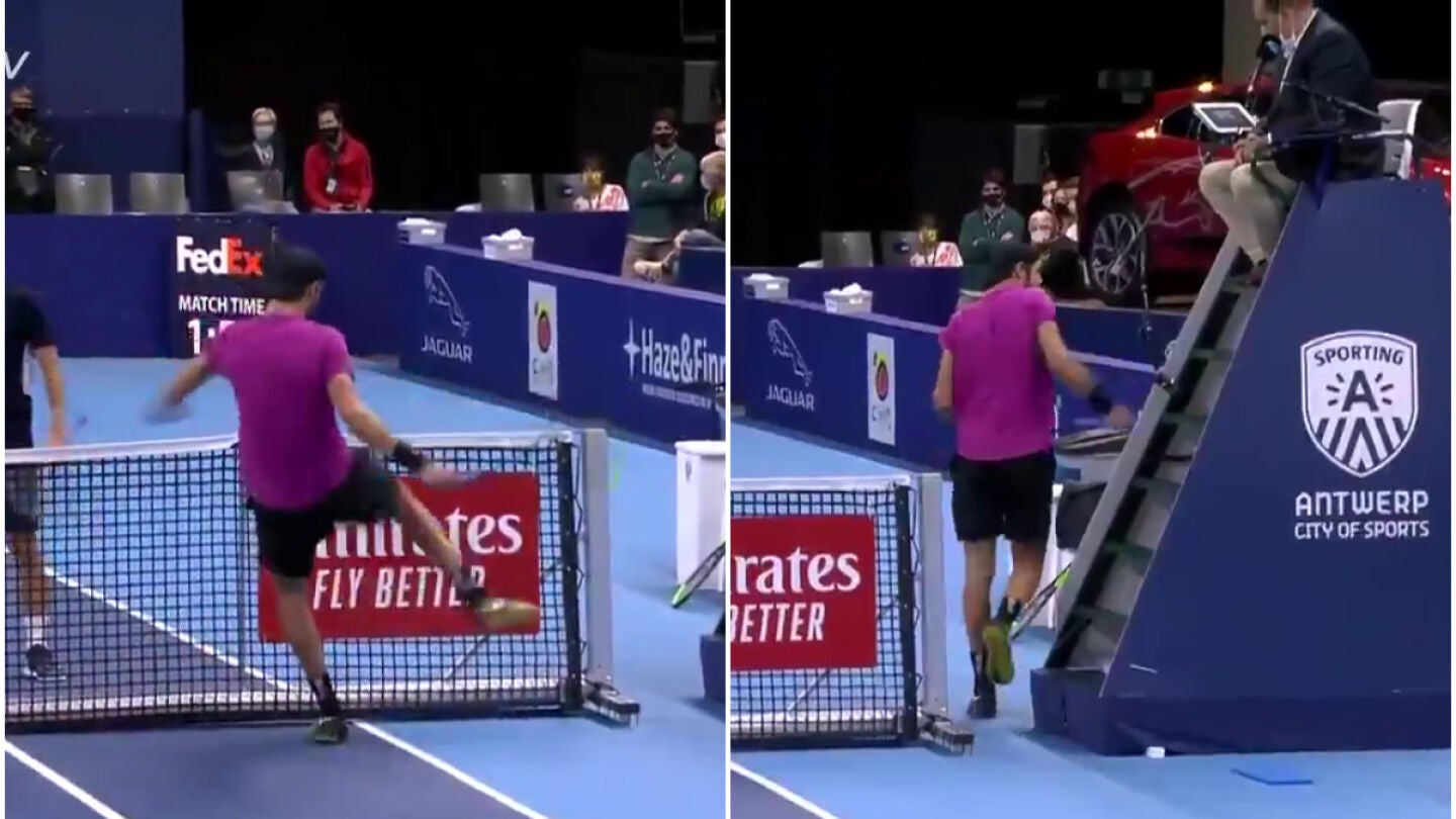 Primero se quejó con bastante 'pasión' al juez de línea para, posteriormente, patear la red hasta casi cargársela. Para completar el 'hat trick', Khachanov golpeó con su raqueta al lugar en el que se sienta el juez de silla.
