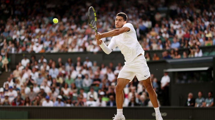 En unas declaraciones recogidas por el 'AS', Alcaraz ha analizado la posibilidad de imponerse a Novak Djokovic, campeón de los últimos 4 Wimbledons, sobre el verdín de Londres: "Djokovic, junto con Federer, es de lo mejor que ha pisado una pista de hierba, así que será difícil. No digo que no estoy capacitado para ganarle a Djokovic, pero sobre hierba tengo menos posibilidades".