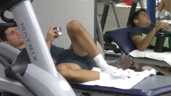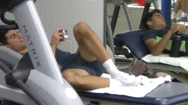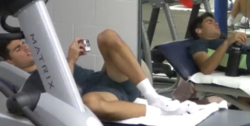 En uno de los parones por la lluvia se pudo ver a Carlos Alcaraz concentrado viendo su móvil. El tenista murciano confesó que en una de las pausas por la lluvia se motivó utilizando un vídeo "del entrenamiento de la película Rocky IV" destacando que para él este método es fundamental para aumentar su nivel.
