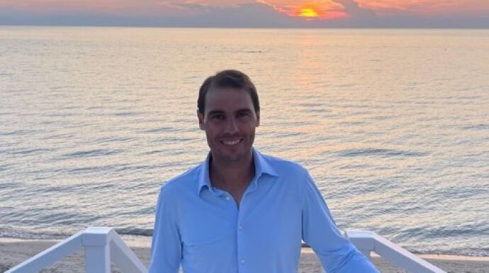La imagen muestra la paz que vive Rafa en estos momentos. Nadal posaba sonriente, con un paisaje espectacular junto al mar y con la puesta de sol de fondo.