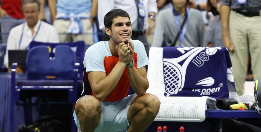 Carlos Alcaraz venció a Frances Tiafoe en semifinales del US Open en un partido que se fue a cinco sets, por tercer encuentro consecutivo para el murciano. Esto le ha llevado a la que es la primera final de Grand Slam de su vida y situarse a una victoria de romper varios récords de la ATP.