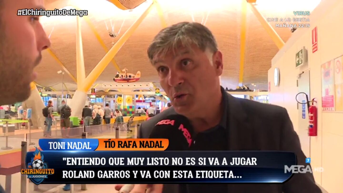 El exentrenador de Rafa Nadal atendió a Marcos Benito, periodista de 'El Chiringuito' en el aeropuerto. "Roma fue un gran torneo y Nadal va con buenas sensaciones a Roland Garros", explico Toni Nadal.