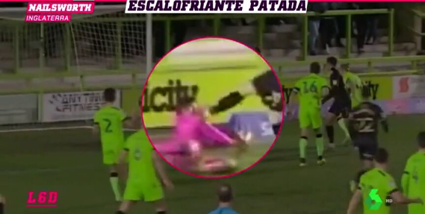 Duras imágenes: un portero se queda sin dientes tras una brutal patada en Inglaterra