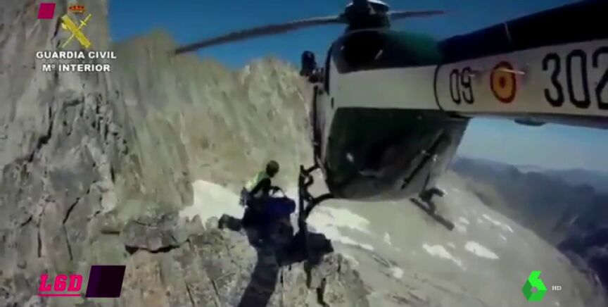 El helicóptero de la Guardia Civil vuela a 3.241 metros de altura... Y casi rozando la montaña.