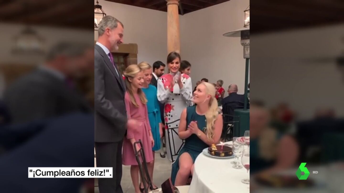 Menuda felicitación de cumpleaños tuvo Lindsey Vonn. La esquiadora, reciente ganadora del Princesa de Asturias, vio cómo el rey Felipe, la reina Letizia, la princesa Leonor y la infanta Sofía cantaban para ella el mítico 'cumpleaños feliz'.