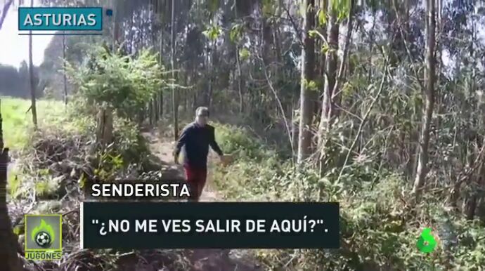 Un senderista se enfadó con un ciclista que estuvo apunto de atropellarle mientras paseaba por el bosque. Informa Jugones.